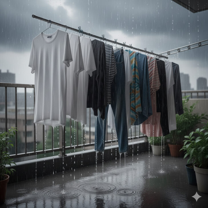 突然のゲリラ豪雨!濡れた洗濯物はもう1回洗い直す??