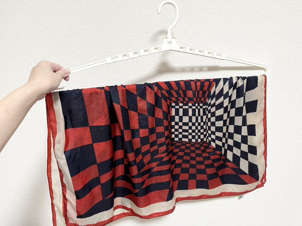 今回は大判のスカーフのため、自宅にあったバスタオル用のハンガーに掛けて乾かしていこうと思います!紫外線に弱いので陰干しで風通しのいいところで乾燥させていこうと思います!